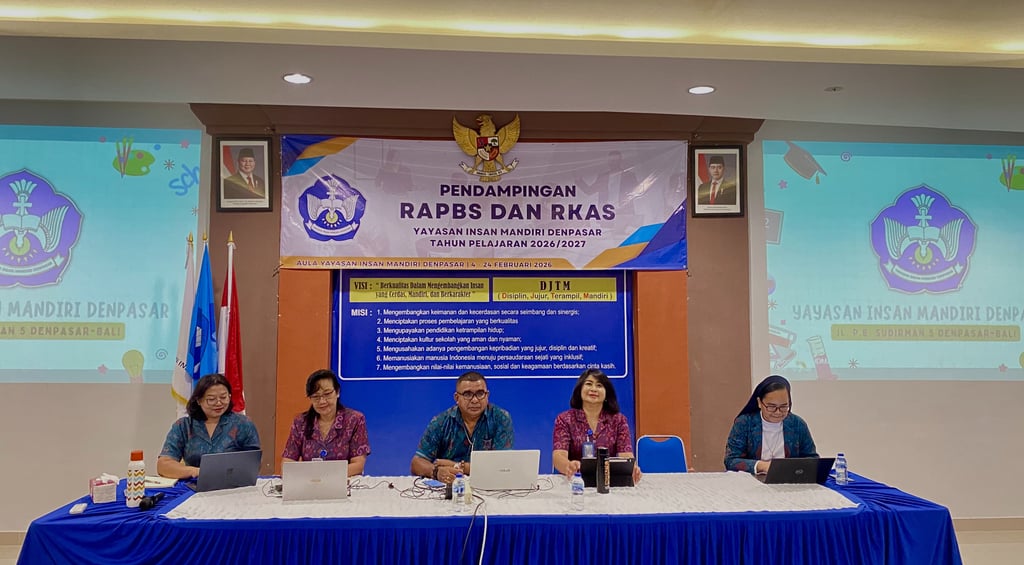 Dalam rangka mempersiapkan Tahun Ajaran 2026/2027, Yayasan Insan Mandiri Denpasar menyelenggarakan kegiatan Pendampingan RAPBS dan RKAS bagi seluruh unit sekolah di Bali, Lombok, dan Sumbawa. Kegiatan yang berlangsung pada 4–24 Februari 2026 ini menjadi momentum penting untuk memastikan bahwa setiap perencanaan RAPBS dan RKAS tersusun secara realistis, terukur, serta selaras dengan visi dan misi Yayasan Insan Mandiri Denpasar sebagai lembaga pendidikan Katolik yang berorientasi pada mutu dan pelayanan.
