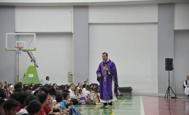 Denpasar, 18 Februari 2026 - Regio Santo Yoseph Yayasan Insan Mandiri Denpasar menggelar Misa Rabu Abu sebagai penanda dimulainya Masa Prapaskah. Abu di dahi menjadi tanda yang sederhana namun sarat makna, yakni sebagai pengingat akan kefanaan manusia sekaligus panggilan untuk kembali kepada Tuhan dengan hati yang bertobat. Momentum Rabu Abu yang penuh rahmat ini dilangsungkan di Gedung Sport Center dan diikuti oleh seluruh keluarga besar Regio Santo Yoseph dalam suasana khidmat. Rabu Abu bukan sekedar perayaan liturgis tahunan, melainkan awal perjalanan rohani selama empat puluh hari untuk memperbarui diri, menata kembali relasi dengan Tuhan, sesama, dan ciptaan, serta melangkah dengan komitmen baru menuju kehidupan yang lebih baik.