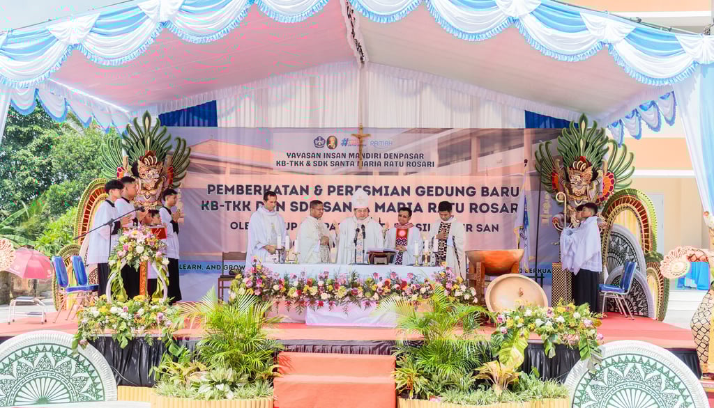 Gianyar, 30 Januari 2026 — Dalam semangat syukur dan pengharapan akan masa depan pendidikan yang semakin berkualitas, TKK Santa Maria Ratu Rosari Gianyar dan SDK Santa Maria Ratu Rosari Gianyar, yang berada di bawah naungan Yayasan Insan Mandiri Denpasar, melaksanakan Pemberkatan dan Peresmian Gedung Baru pada Jumat, 30 Januari 2026. Peristiwa ini menjadi momen penting dalam perjalanan pelayanan pendidikan Yayasan Insan Mandiri Denpasar dalam menghadirkan lingkungan belajar yang aman, nyaman, dan mendukung tumbuh kembang peserta didik secara menyeluruh.