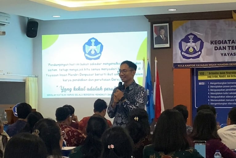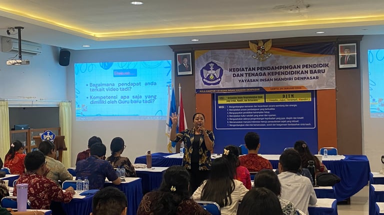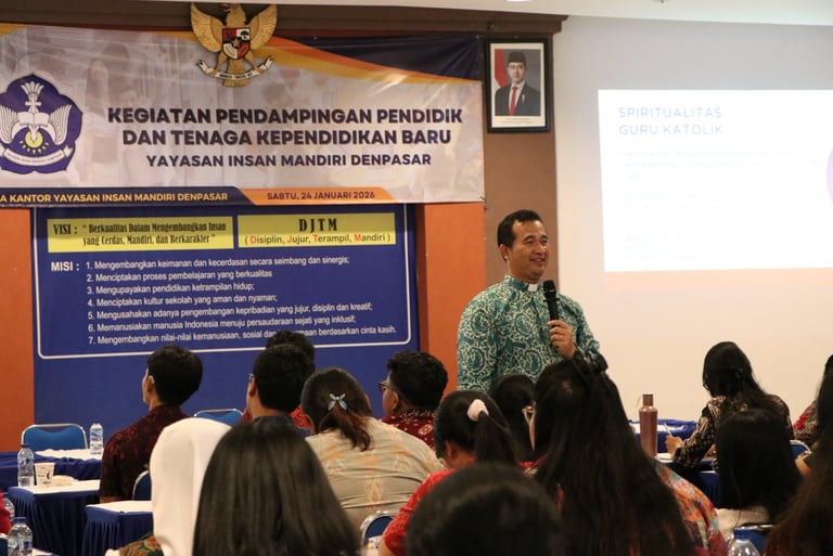 Denpasar, Sabtu, 24 Januari 2026 — Dalam semangat pelayanan serta komitmen berkelanjutan untuk membangun pendidikan yang bermutu dan berkualitas, Yayasan Insan Mandiri Denpasar menyelenggarakan Kegiatan Pendampingan Pendidik dan Tenaga Kependidikan Baru. Kegiatan ini merupakan program rutin Bagian Personalia Yayasan Insan Mandiri Denpasar yang secara konsisten dilaksanakan sebagai bagian dari proses pembinaan dan penguatan Sumber Daya Manusia (SDM) di lingkungan Yayasan Insan Mandiri Denpasar.