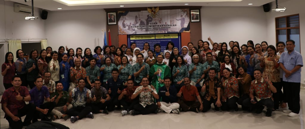 Sebanyak 68 peserta dari seluruh unit pendidikan di bawah naungan Yayasan Insan Mandiri Denpasar, mulai dari Taman Kanak-kanak (TK), Sekolah Dasar (SD), Sekolah Menengah Pertama (SMP), hingga Sekolah Menengah Atas (SMA), turut serta dalam kegiatan ini dengan penuh antusiasme. Para peserta, yang terdiri dari Kepala Sekolah, Wakil Kepala Sekolah dan Guru-Guru, telah menjalani serangkaian kursus intensif yang mencakup pengembangan keterampilan kepemimpinan, analisis strategis, dan pembinaan karakter berbasis nilai-nilai pendidikan Katolik.