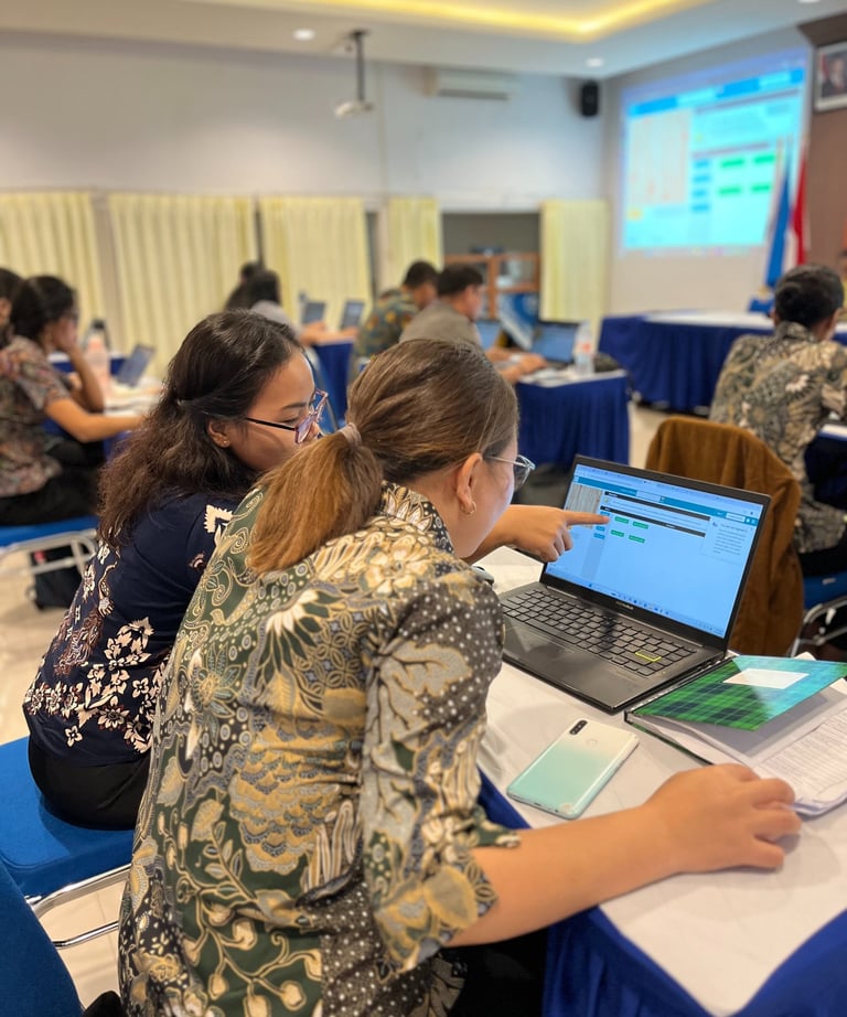 Untuk memastikan materi yang relevan, peserta dibagi ke dalam tiga kelompok berdasarkan jenjang pendidikan: SD, SMP, dan SMA. Setiap kelompok didampingi oleh mentor muda dari Timedoor Academy yang energik dan penuh dedikasi. Guru SD diperkenalkan pada dasar-dasar logika pemrograman melalui platform seperti Scratch, yang ramah untuk anak-anak. Guru SMP belajar membuat aplikasi sederhana, sementara guru SMA menyelami proyek berbasis AI yang lebih kompleks, seperti analisis data dan pengenalan algoritma. Materi pelatihan mencakup pengenalan variabel, event, loop, hingga praktik langsung menggunakan alat seperti Visual Studio Code, Scratch, dan Python.